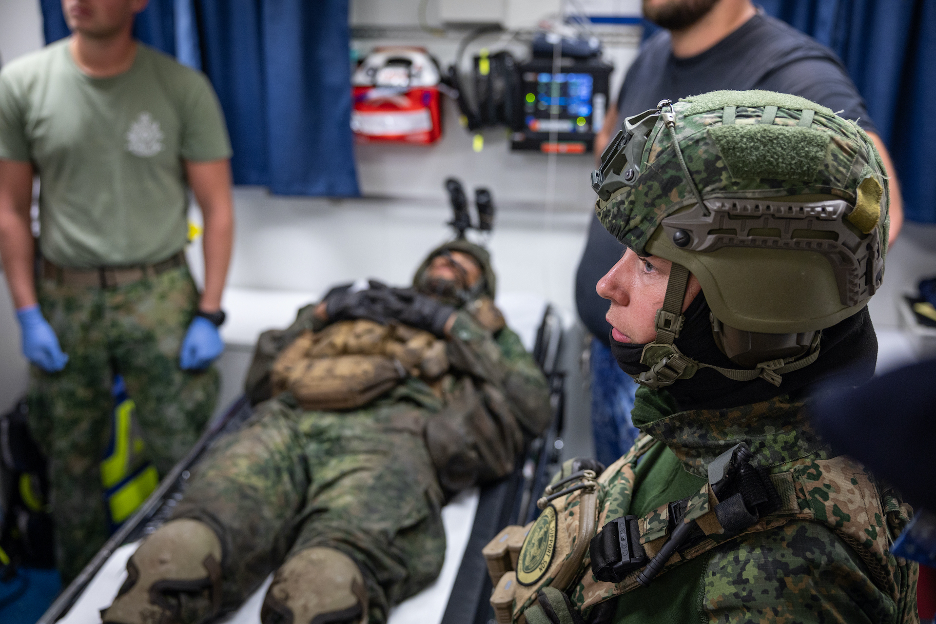 Daarom oefenden de 17 bemanningsleden in de ondersteuning van medische afvoer. Ook diende de ‘Peli’ als commandopost, bevoorradingsplatform en ‘garage’ om FRISC’s te repareren. “We konden goed de limieten opzoeken. Zo weten we wat we wel en niet kunnen. En wat er nodig is. Zo blijkt de huidige bemanning van 17 niet genoeg voor oorlogstaken. Om tijdens een langere inzet ondersteuning te bieden en tegelijkertijd het schip varende te houden, zijn er meer mensen aan boord nodig.”