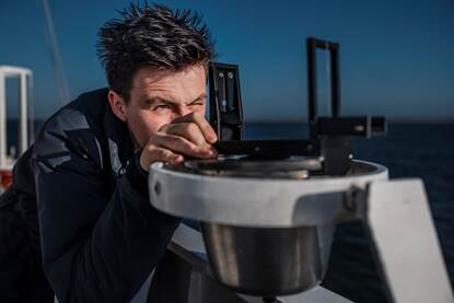 Varend dicht onder de Deense kust kan het zomaar voorkomen dat je te laat merkt dat het schip op de kust afstevent. Van Kan ziet het bij een leerling gebeuren, maar zegt nog niets. Hij wacht af of de wachtsofficier-in-opleiding het merkt. “Ze leggen zichzelf soms te veel druk op”, oordeelt de commandant, nadat hij de adelborst er alsnog op gewezen heeft dat hij ‘land in zicht’ niet te letterlijk moet nemen.