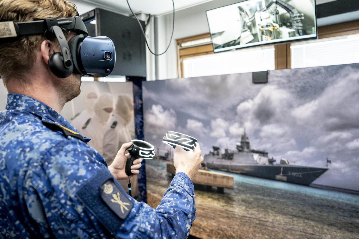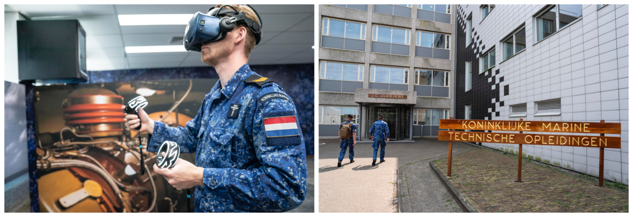 Nieuw bij de Koninklijke Marine Technische Opleidingen (KMTO) op Marinekazerne Erfprins: een Virtual Reality (VR)-lokaal waar techneuten-in-opleiding op hun gemak kunnen oefenen. Veilig en onbeperkt, zonder schip. Dus hightech bril op, controllers in de hand en dingen doen.