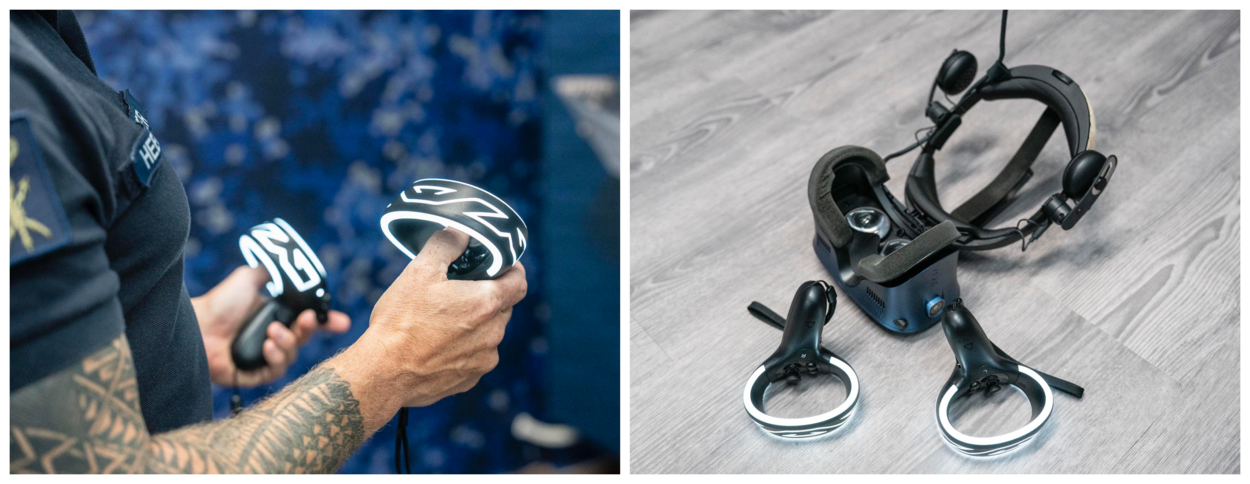 Het lokaal telt 5 VR-stations waar cursisten een bril op kunnen zetten om een andere, digitale wereld te betreden. Met 2 controllers kunnen ze in die wereld dingen aanklikken voor meer informatie. Of kunnen ze bepaalde handelingen oefenen. Dat kan onbeperkt en fouten maken is geen probleem. “Er kan niks kapot, het is volledig veilig”, benadrukt adjudant Heemskerk. “Bovendien zijn onze mensen dankzij deze training straks sneller inzetbaar”, vult zijn collega Smit aan. Ze hebben in de digitale wereld immers al kennisgemaakt met de systemen.
