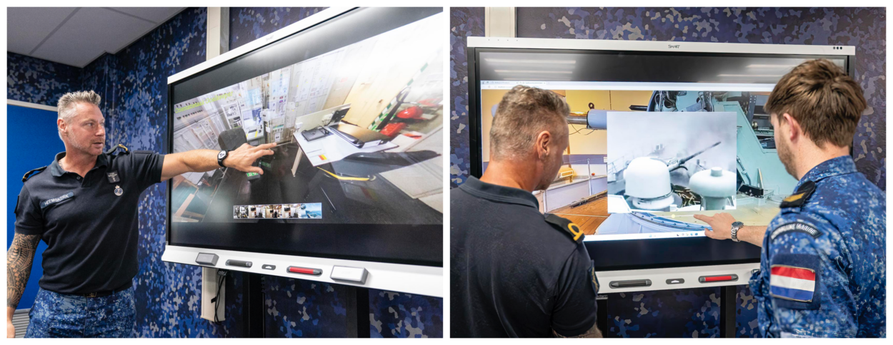 Het lokaal is bedoeld voor de techneuten van de marine: de collega’s die aan SEWACO-systemen (sensoren, wapens, communicatie) werken en de monteurs in de machinekamers. Dankzij de VR-ruimte hoeven cursisten niet te wachten totdat zij daadwerkelijk aan boord van een schip kunnen oefenen. “Vaak zijn schepen op zee en dus niet beschikbaar”, legt Heemskerk uit. “Hoe mooi is het dan dat zij bij ons alvast aan de slag kunnen.” Overigens is het niet zo dat de boeken en klassikale lessen compleet zijn verdwenen, laat dat duidelijk zijn. Het VR-lokaal is een aanvulling op de bestaande opleidingscapaciteit.