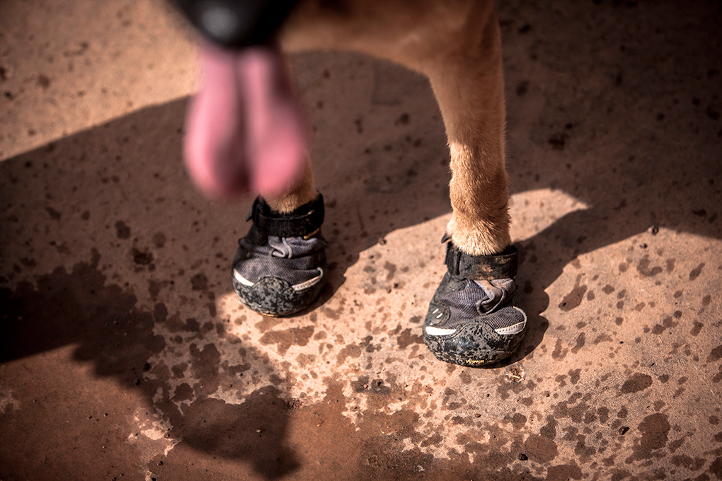 Om hun poten niet te branden aan het hete asfalt of woestijnzand, lopen Laika en Ozzy op speciale hondenschoenen. “Heel goede schoenen zelfs”, weet Anne. “Met speciale zooltjes. Ook dat was wel even wennen voor ze, daarom zijn we ruim voor de uitzending al begonnen met het dragen ervan.”