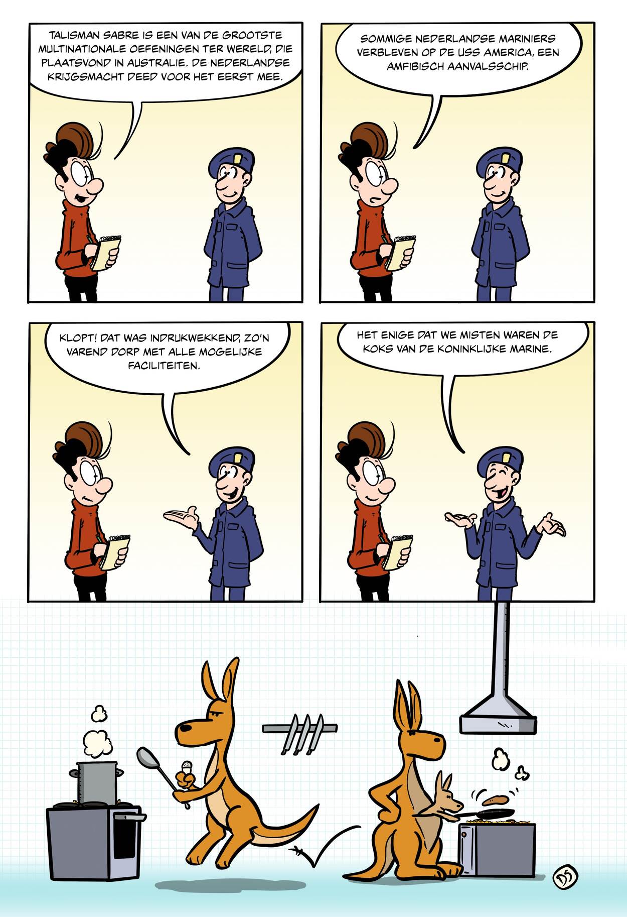 Disclaimer: Deze strip is niet bedoeld als uiting of vertaling van defensiebeleid. Het zijn komische interpretaties van de werkelijkheid, op persoonlijke titel van de tekenaar.