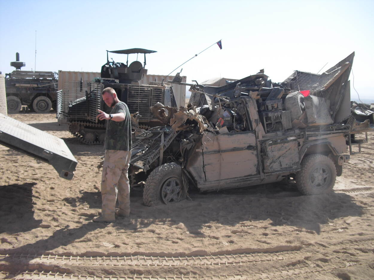 Een mailtje van Jan Willem Bulsink trok direct de aandacht, met name door de bijgesloten foto’s. In een vorige editie van de Defensiekrant stond de foto van een wrak van een Mercedes-Benz, gemaakt nadat het voertuig in Afghanistan op een bermbom was gereden. De zwaarbeschadigde MB staat als een stille getuige in het Nationaal Militair Museum in Soesterberg.