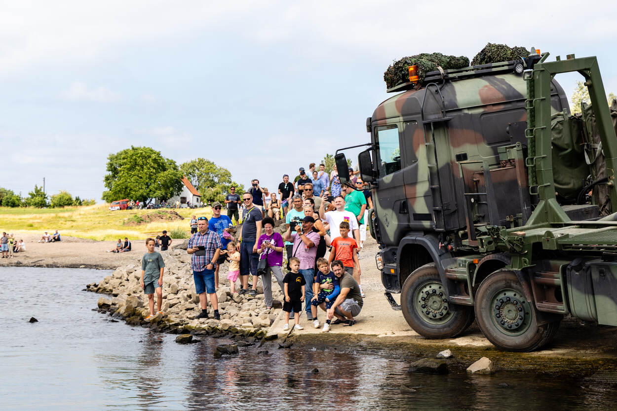 “Iedereen viert vakantie en wat is er leuker dan gaan kijken bij Defensie, die op het water aan het werk is”, schrijft onze vaste correspondent Martin Bos. Nu zijn werk, hobby en vakantie ongeveer hetzelfde voor deze bezige bij en dat levert altijd aardige foto’s op. Zoals deze van een schare toeschouwers – dagjesmensen in de bewoording van Martin – die is toegestroomd voor een WLS (wiellaadsysteem) bij de Rijn.