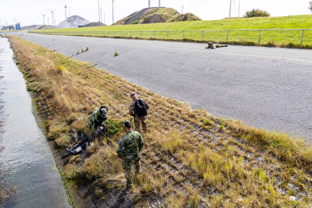 Op de site van Martin (Defensiefotografie.nl) staat een fraaie reportage van Sandy Coast 2025 met nog veel meer foto’s vanaf het water. We kozen echter voor een foto die hij aan wal maakte, net nadat het journaille vaste grond onder de voeten had en zich naar de parkeerplaats spoedde. “De Explosieven Opruimingsdienst was daar flink druk bezig”, zegt hij.