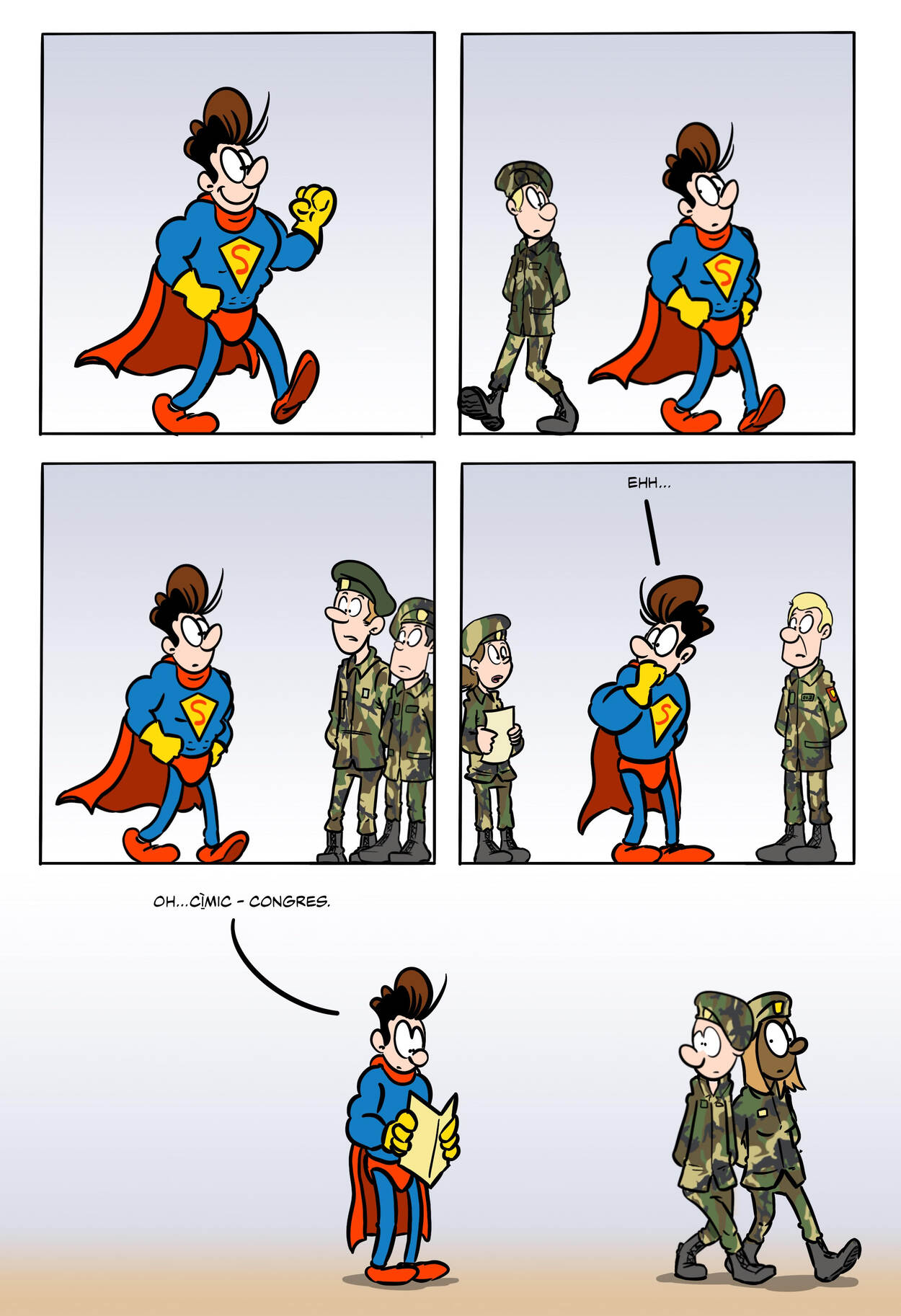 Disclaimer: Deze strip is niet bedoeld als uiting of vertaling van defensiebeleid. Het zijn komische interpretaties van de werkelijkheid, op persoonlijke titel van de tekenaar.