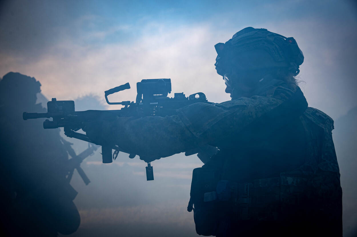 De grond trilt onder onze voeten en het gebrul uit de krachtige motor van een CV90 vult de straten. Tijdens Urban Peacock trainde het Bravo-team inclusief gevechtscompagnie van 45 Pantserinfanteriebataljon afgelopen weken het optreden in verstedelijkt gebied (OVG). Dat gebeurde in oefendorp Marnehuizen. Zoals altijd betekende dat heel veel ‘zagen’, uitstijgen, rook, huizen zuiveren en hindernissen doorbreken. Dat leverde deze fraaie platen op.