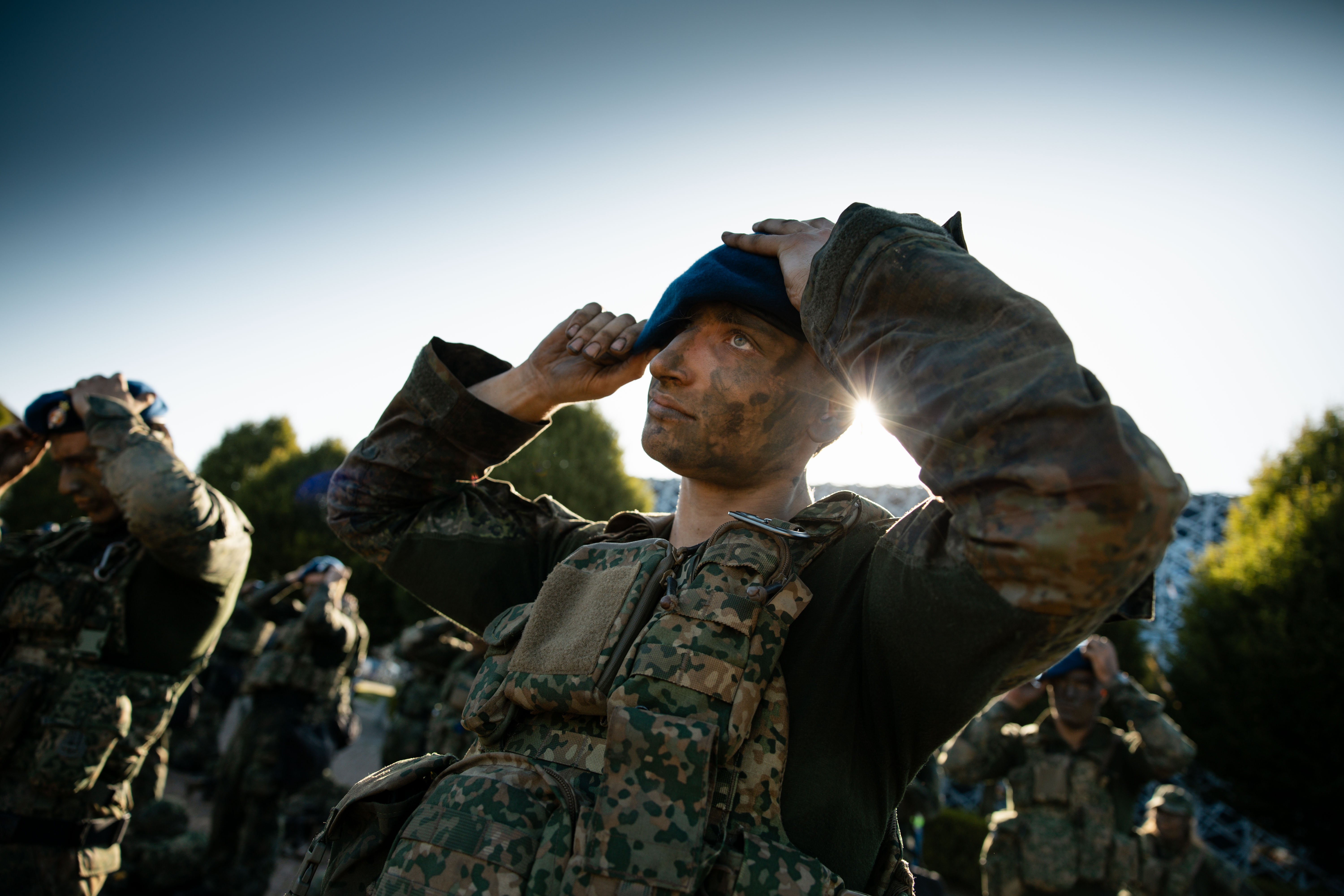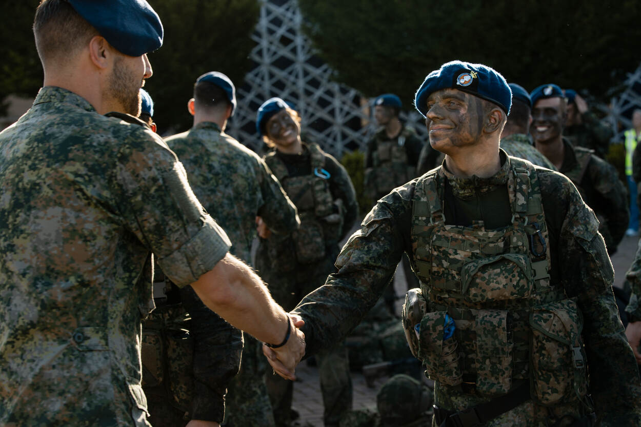 36 wachtmeesters in opleiding en 21 dienjaarmilitairen ontvingen donderdag 3 juli hun blauwe baret. Het was de laatste lichting voor de zomer die deze eer te beurt viel. Na een afsluitende bivak met onder meer brancardraces, roeien en verplaatsingen, luidden de hindernisbaan en de commandantenmars het einde in van dit deel van de opleiding.