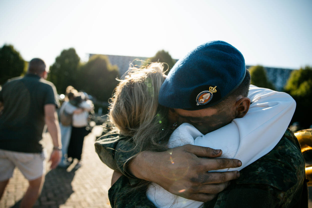 Nadat de groep zich opstelde op het centrale plein, werden ze toegesproken door de commandant Sector Basis Opleidingen. Daarna was het zover: de helmen mochten af en de blauwe baretten op. De welverdiende beloning voor het succesvol afronden van hun groene periode en het teken om daarna familie en vrienden in de armen te vallen.