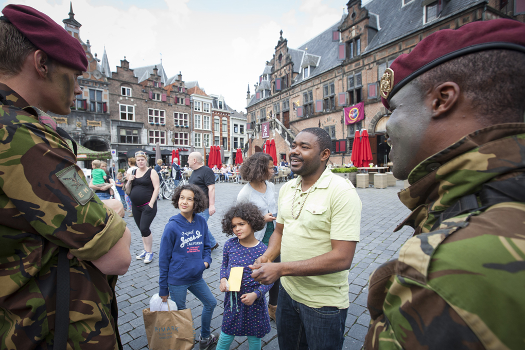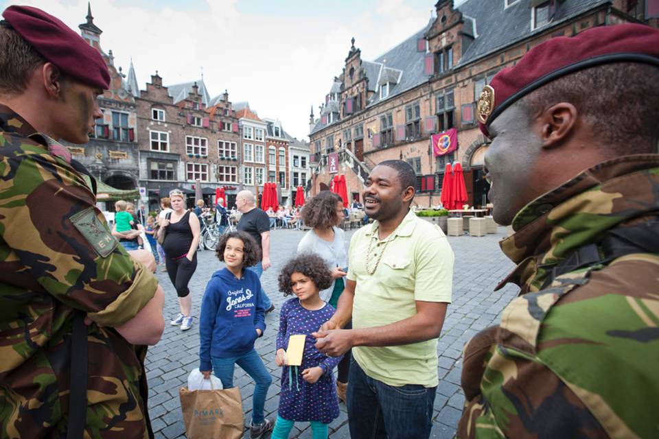 De Rode baretten ‘veroveren’ dit jaar Rotterdam, Assen en Tiel. In de havenstad pakt de luchtmobiele brigade het grootst uit. Naast doe-activiteiten, verzorgt de eenheid op de speciale ingerichte landmachtpleinen, demonstraties en static shows.