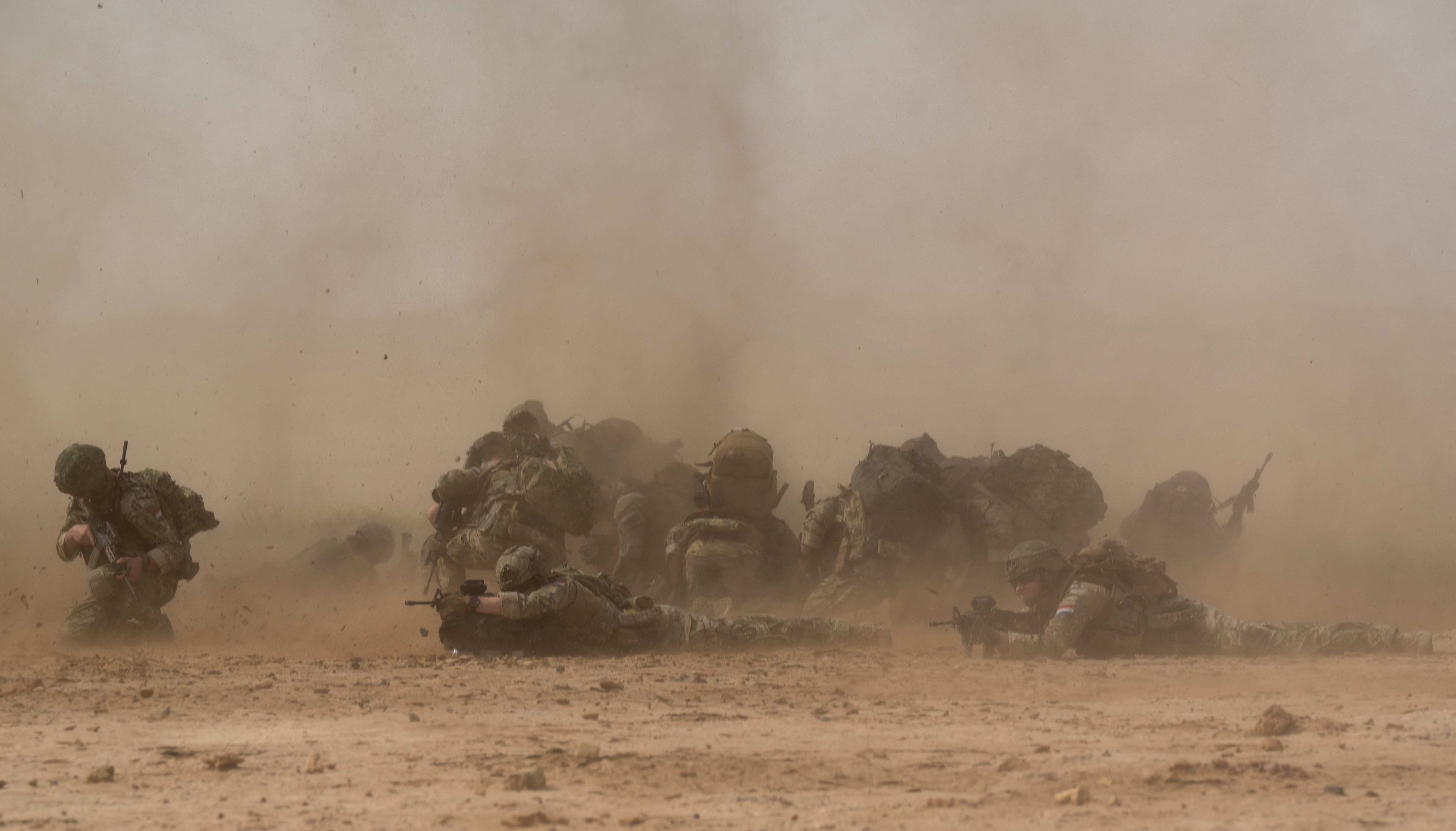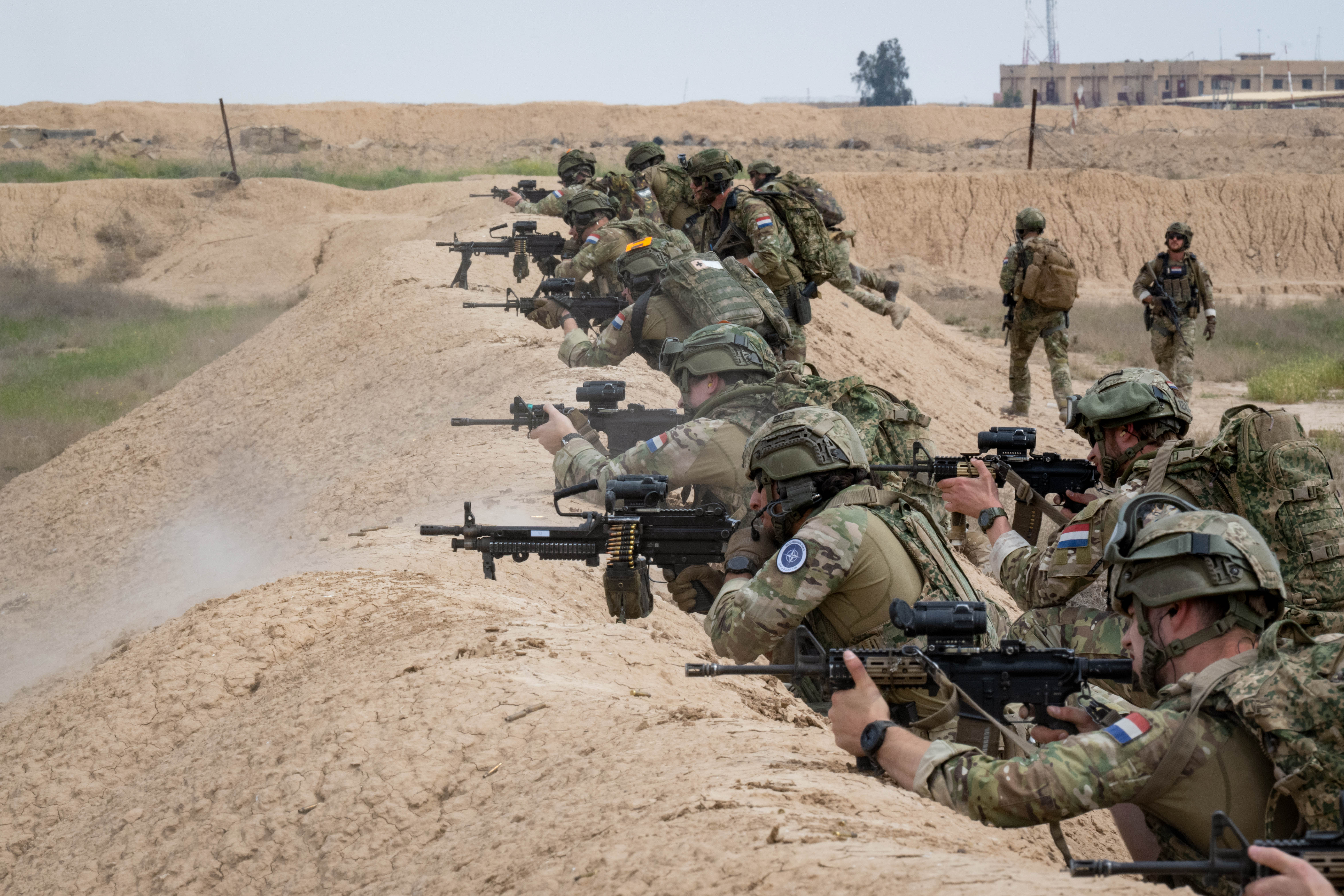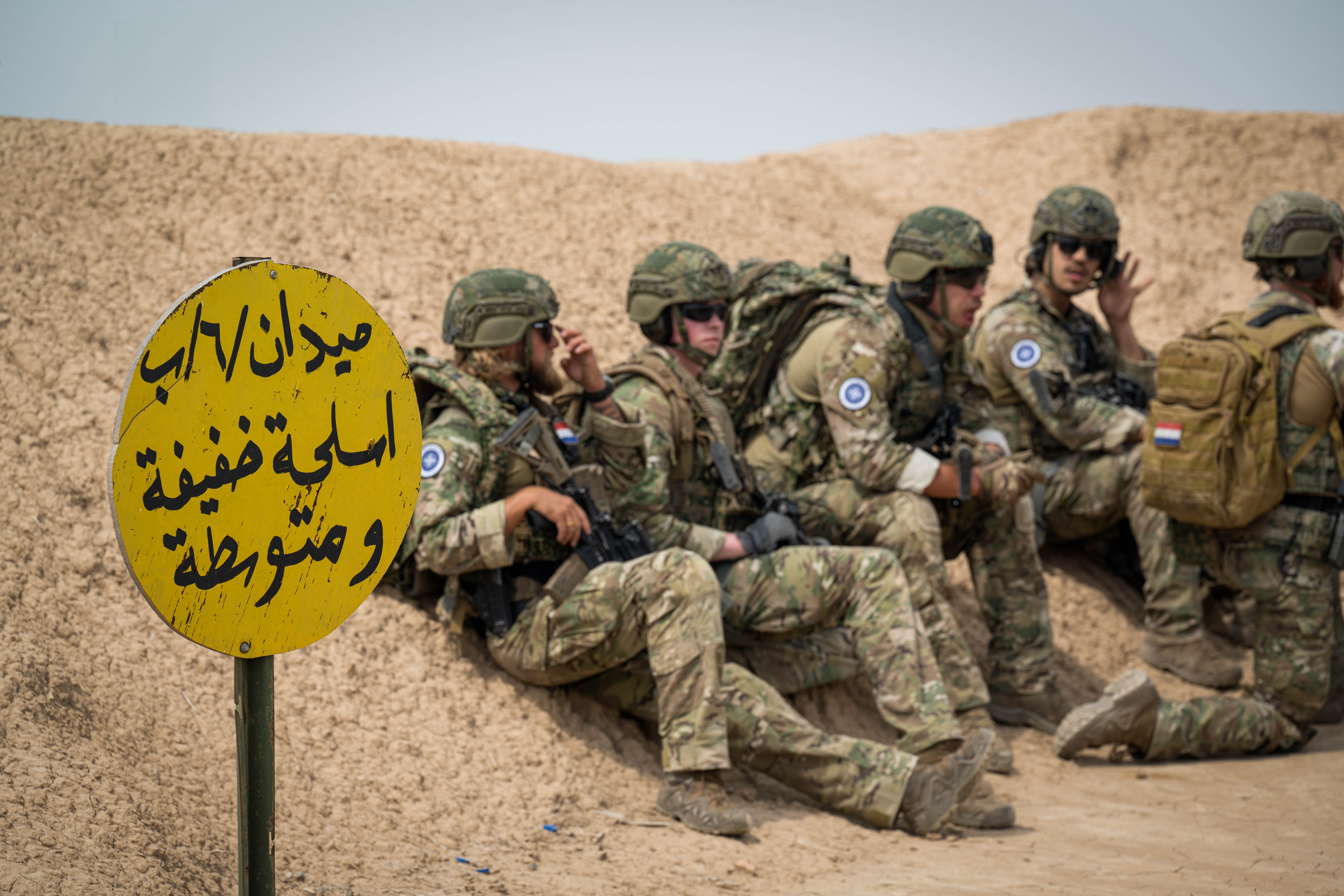 De Alfa ‘Konings’compagnie van 11 Infanteriebataljon mocht zich vorige maand in Irak onderdompelen in waarvoor ze eigenlijk op aarde is: het uitvoeren van een air assault vanuit 2 Chinooks. Een welkome oefening op het Iraakse terrein Besmaya in de buurt van Bagdad. Want ook al voeren de militairen hun Force Protection-ritten tijdens hun NAVO-missie professioneel uit, het ‘groene’ werk moeten ze wel in de vingers houden. Een fotoserie van een middag waarbij zand op het menu stond.