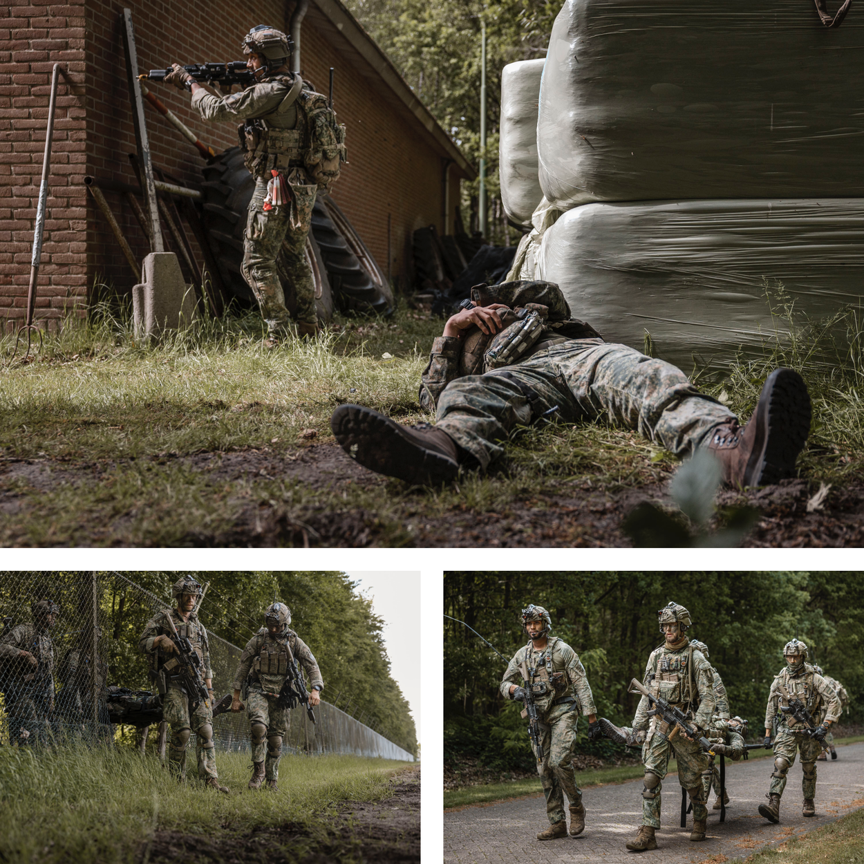 Ook dat maakt Spring Falcon nog eens realistischer, constateert sergeant-majoor Marwin als de compagnie zich weer met gewonden naar de landingsplaats voor de helikopters spoedt. “Ze worden nu in 2 shifts opgehaald door de Chinook. In dit draaiboek gebeurt dat op deze plek; normaal gesproken zoek je daarvoor een tweede landingsplaats. Dat was echter lastig voor de vliegers. Over hun steun, ook van andere eenheden én de bevolking hier hebben we trouwens zeker niet te klagen.”