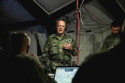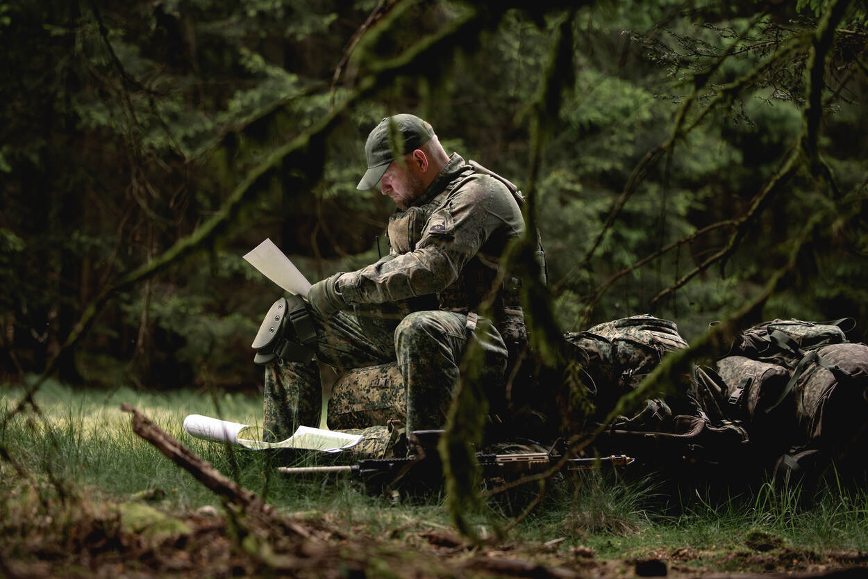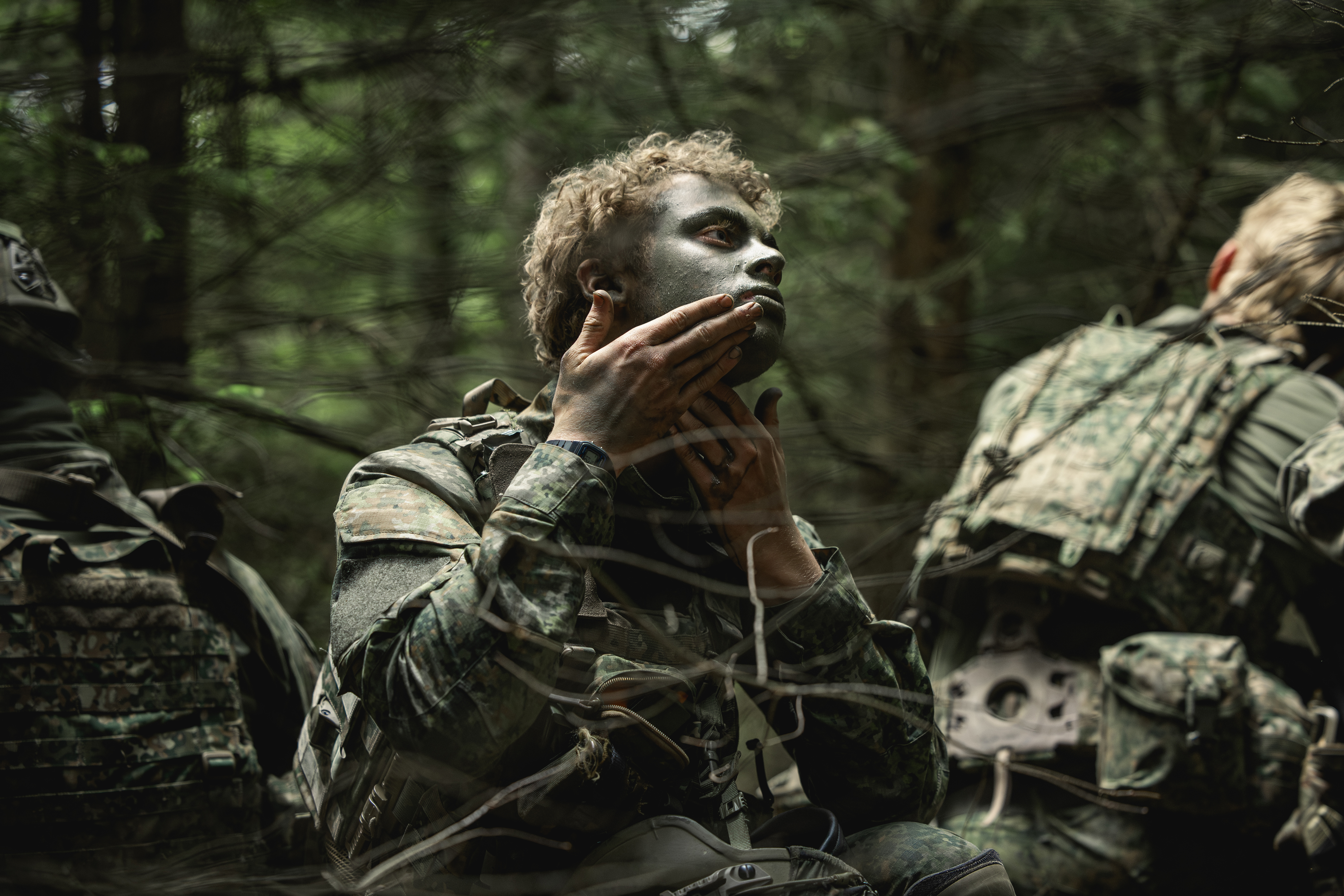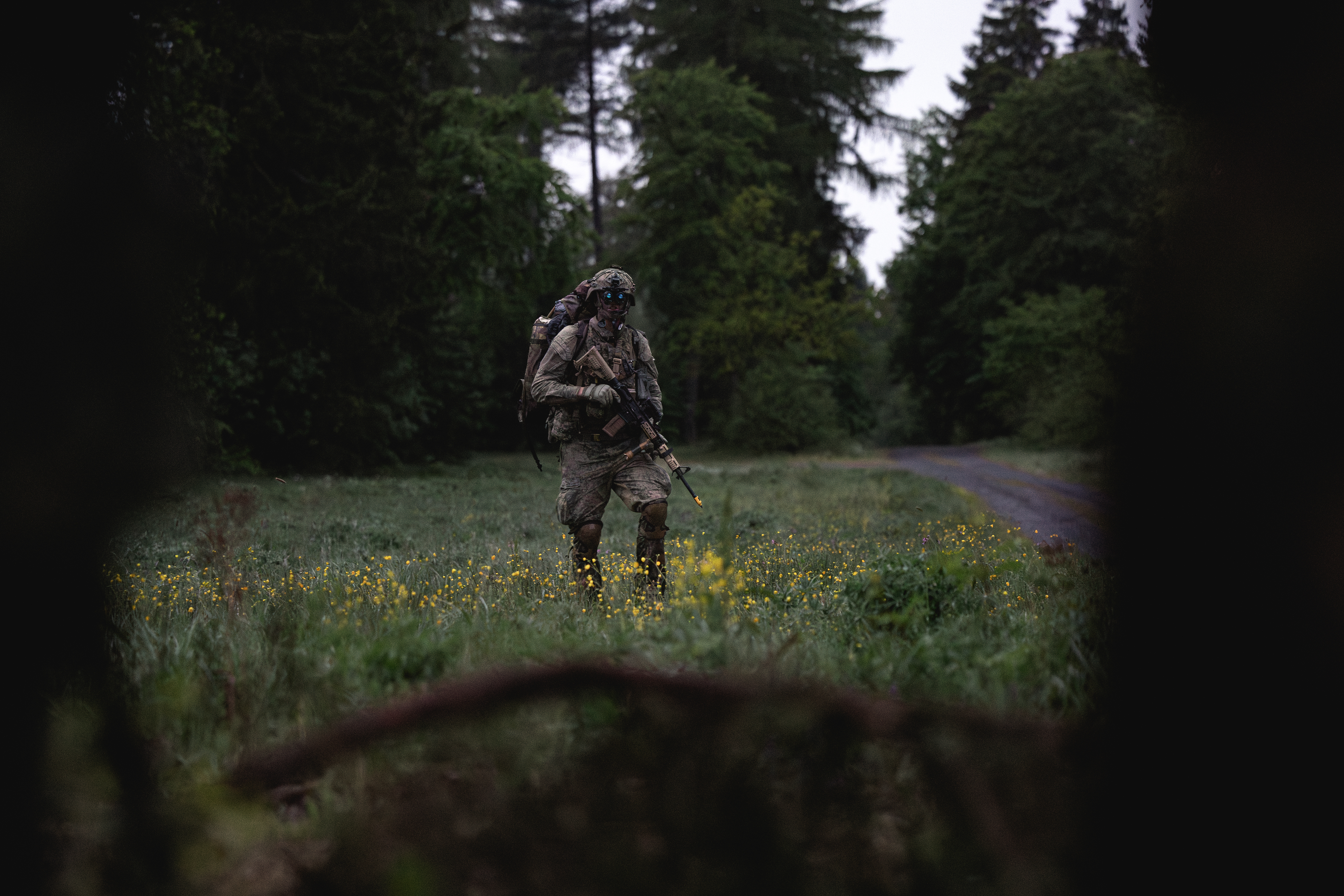 Dat houdt in dat we de rondombeveiliging doen, het gebied verkennen, patrouilles lopen en controleren wie er binnenkomt. We werken nauw samen met 10 Infbat, die de nabijbeveiliging van de CP op zich neemt. Dat deel kunnen wij dus loslaten zodat we een bredere gebiedsverkenning kunnen doen. In het scenario zijn bijvoorbeeld vijandelijke voertuigen gespot, die wij moeten opsporen. Best uitdagend, want we zitten ’s nachts in een schuilbivak, slapen weinig en lopen derdelijns.