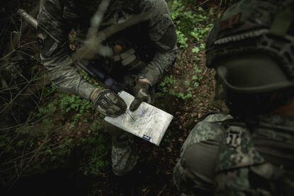 Het Stafwachtpeloton doet een gebiedsverkenning.