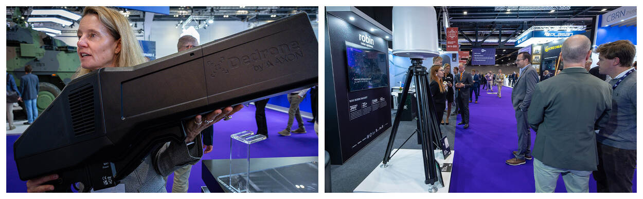 Samenwerking tussen Defensie en de nationale en internationale industrie is hard nodig, betoogt staatssecretaris Gijs Tuinman bij de opening van dat paviljoen. Een goed voorbeeld daarvan is het Nederlandse Robin Radar. Het bedrijf (Radar Observation of Bird INtensity) is ooit begonnen met een radar om zwermen vogels bij vliegvelden waar te nemen. Na allerhande aanpassingen blijkt de radar bijzonder geschikt om drones in het luchtruim zichtbaar te maken. Het was aanvankelijk een gezamenlijk project met TNO en Defensie. 10 jaar geleden zette algemeen directeur Siete Hamminga het bedrijf in de markt. Met sinds kort internationale uitbreiding en erkenning. “We hebben vorig jaar een kantoor in de Verenigde Staten geopend”, laat Hamminga trots weten. “Inmiddels gaat er een kreet rond”, vervolgt hij met brede glimlach: “Gotham City heeft Batman, wij hebben Robin.”