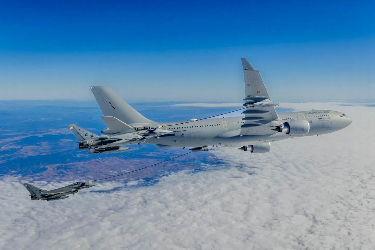 De A330 MRTT's zijn uitgerust met een ultramodern tanksysteem en kunnen ruim 18 uur vliegen met een bereik van 16.000 kilometer. In de brede romp kan de A330 MRTT maximaal 300 soldaten of in de rol van transportvliegtuig een lading tot 45 ton vervoeren. Met een speciale MedEvac-kit (medische evacuatie) kunnen verschillende brancardmodules en intensive care-afdelingen worden geïnstalleerd. De toestellen komen te staan op vliegbasis Torrejón de Ardoz nabij Madrid. (Foto Airbus)