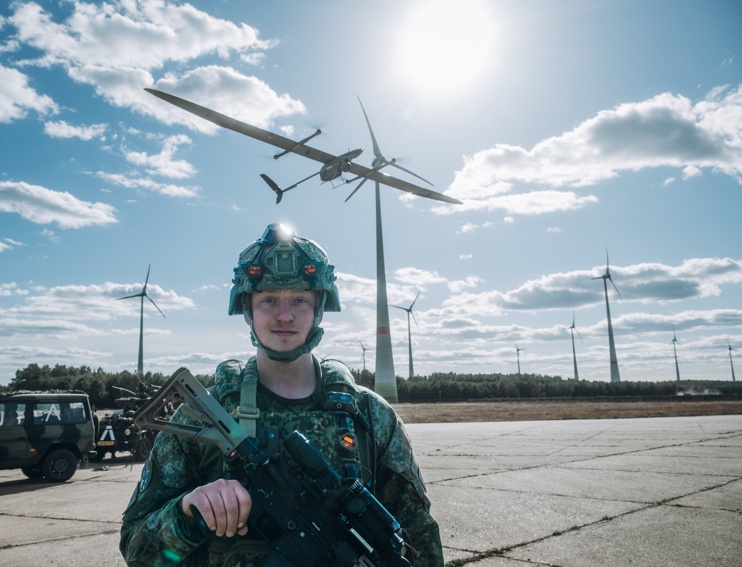 We spreken Jessey op Bastion Lion, de grootste landmachtoefening van het jaar die gehouden wordt op het Duitse oefenterrein Guz Altmark. Zijn team bestaat in totaal uit negen operators, waarvan hij er zelf een is. Tijdens Bastion Lion spelen de drones een belangrijke rol tijdens het innemen en behouden van het oefendorp Schnöggersburg. “Eigenlijk kunnen we niet meer zonder drones. Het is een makkelijk middel voor surveillance zonder dat je daadwerkelijk mensen levert. We zien de rol van drones niet alleen in Oekraïne maar ook in Israël. De oorlog in Oekraïne is een conflict waaruit we zeker veel lessons learned halen.” Ondanks de cruciale rol van de drones, was het niet vanzelfsprekend dat ze de lucht in mochten in Duitsland. “Ze wilden ook veel vliegtuigen laten vliegen hier. En vliegtuigen met drones; dat is niet te doen. Dan hebben vliegtuigen voorrang. Maar uiteindelijk werden alle beperkingen losgelaten. Toen was de hoogte waarop we zouden vliegen ook vrij. De maximumhoogte waarop de EOS C VTOL kan vliegen is anderhalve kilometer, maar we vliegen op ongeveer een kilometer.”