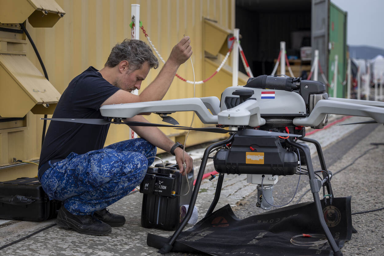 Het Commando Materieel en IT (COMMIT) werkte tijdens REPMUS met drie types: de DeltaQuad EVO, de Acecore Noa en de High Eye Airboxer. Deze Unmanned Aerial Vehicles (UAV) zijn gemaakt voor verkenning en elektronische oorlogsvoering. Alle drie zijn in staat om op grote afstand van het moederschip te opereren, maar of ze ook daadwerkelijk worden aangeschaft, is volgens Ferdinand nog geen gelopen race. “Als je lang en ver wil vliegen, biedt een ontwerp met vleugels uitkomst. Bij het landen, is een helikoptersysteem het handigst. Ook doordat de marine liever geen vergaande aanpassingen aan haar schepen wil doen.” Een drone met VTOL-eigenschappen (Vertical Take-Off and Landing) zou uitkomst kunnen bieden. Helaas kleven hier soms voor- en nadelen aan. Een mechanisch simpele drone kan moeilijke software nodig hebben om te sturen. En andersom. “Kortom, de industrie is er nog niet uit.”