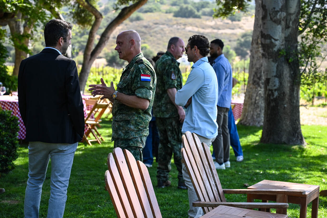 Joost Elstak (links) in gesprek met luitenant-generaal André Steur bij een evenement voorafgaand aan de lancering.