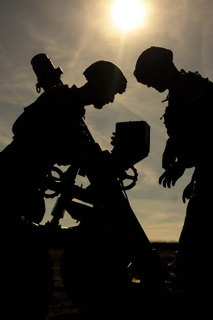 ‘Stuk 2, richting 0695, elevatie 1167!’, klinkt het luid vanuit het FDC. Een korporaal bij de betreffende mortier herhaalt de gegevens en collega’s draaien de standen op het stuk.