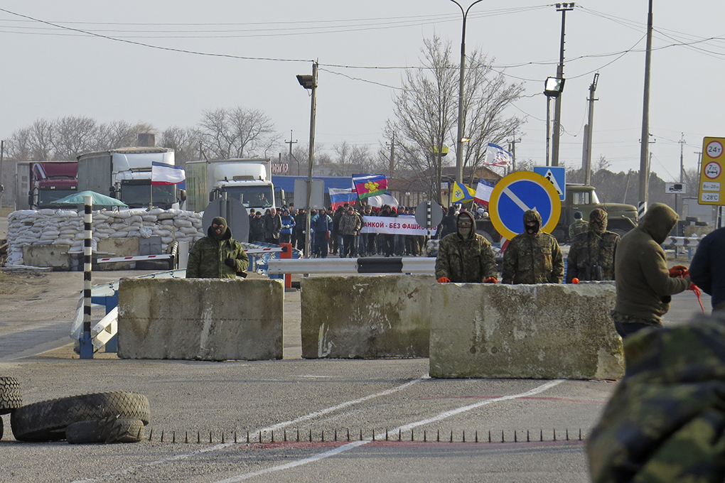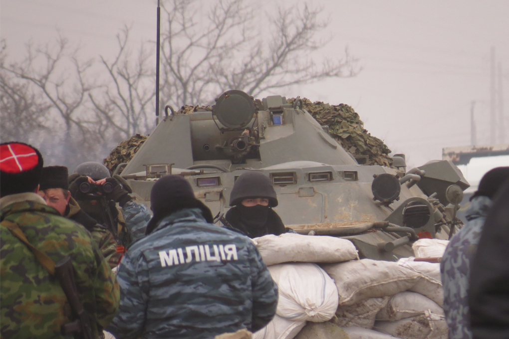 Het Zuid-Oekraïense Kherson is de uitvalsbasis voor de 47 man tellende internationale waarnemersmissie. “De Krim zelf was al afgesloten op het moment dat we aankwamen en dus bleef niets anders over dan vaststellen wie er aan deze nieuwe ‘grens’ staan en wat er allemaal gebeurt: dat was ons globale plan”, vertelt Bel. Bij het eerste checkpoint van de separatisten aan de ‘grens’ met de Krim treft het OVSE-gezelschap een bont schouwspel aan. Barricades en gewapende kerels met bivakmutsen, skipakken en allerlei verschillende uniformen en uniformdelen. “Best indrukwekkend, maar ik voelde me niet echt bedreigd. De sfeer was toen niet echt grimmig.”