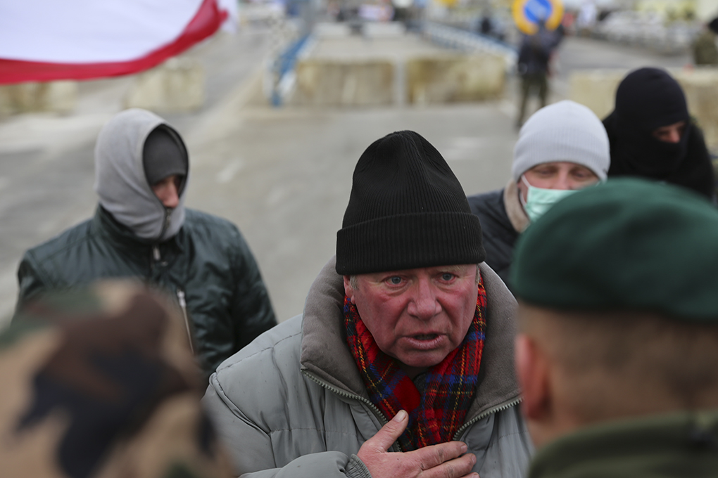 De OVSE’ers arriveerden namelijk niet alleen bij een uitgestorven checkpoint. De separatisten en zij werden omringd door demonstranten met Oekraïense vlaggen, vaandels en allerlei bordjes. “Dat bevorderde het praten met de leiding van de separatisten niet bepaald”, geeft Bel aan. “Kortom, de opstandelingen lieten ons niet door.”