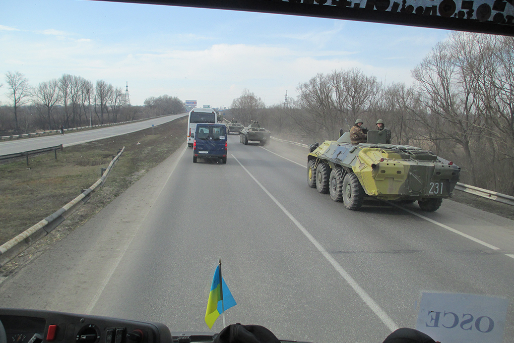 Behalve de checkpoints inspecteert Bells team barakken, kazernes en militaire opslagplaatsen. “De situatie was gespannen, maar in de hand, kregen we steeds te horen van Oekraïense zijde. Dagelijks hielden we de veiligheidssituatie in de gaten. In Luxans was het voor ons niet meer veilig. In Donetsk, en Charkov waren weliswaar demonstraties, maar wij konden daar toen nog gewoon in uniform over straat. We zagen inderdaad militaire activiteiten, maar ook het gewone straatbeeld: moeders met boodschappen, mensen die gewoon niksen.”