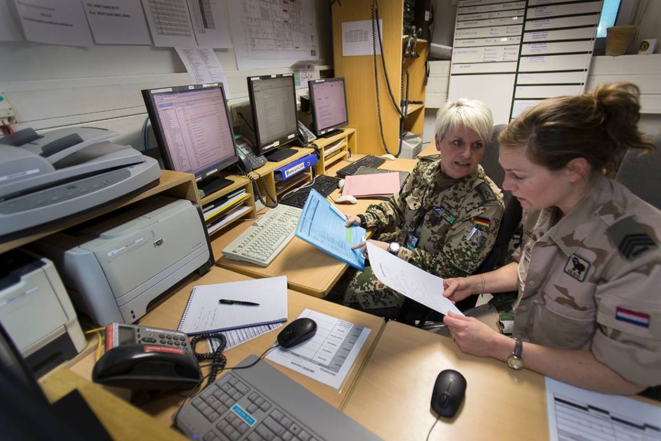 In het PECC werkt Linda samen met 1 Nederlandse en 3 Duitse collega’s. “Omdat de Duitsers met een ander rotatieschema werken, heb ik nogal wat personeelswisselingen meegemaakt. Soms is dat vervelend, want dan ben je net lekker op elkaar ingespeeld en dan moet je weer opnieuw beginnen. Maar dat hoor nu eenmaal bij een uitzending. Het leuke is wel dat je door alle wisselingen veel nieuwe collega’s leert kennen en ik mijn opgedane ervaringen kan delen. De diensten zelf zijn best pittig. Het PECC is 24 uur per dag, 7 dagen in de week bemand. Dat betekent dat we shifts draaien van 12 uur, verdeeld in dagdiensten en nachtdiensten.”