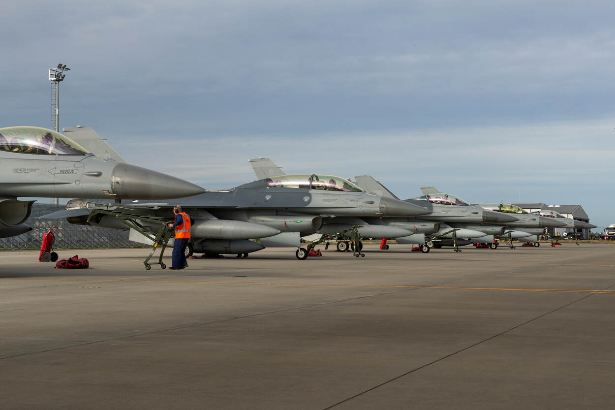 De eerste vijf voormalige jachtvliegtuigen van de Koninklijke Luchtmacht zijn al sinds november 2023 in gebruik bij het Europese F-16-trainingscentrum (EFTC) in Roemenië. De laatste twee leverde de luchtmacht eind november vorig jaar af. Tot 3 november was Nederland nog eigenaar van de jachtvliegtuigen. Naast de achttien toestellen voor het EATC doneerde Nederland er ook 24 aan Oekraïne. Deze worden momenteel al volop door het land ingezet om Russische luchtaanvallen te pareren. Foto: sergeant-majoor Cristian Schrik