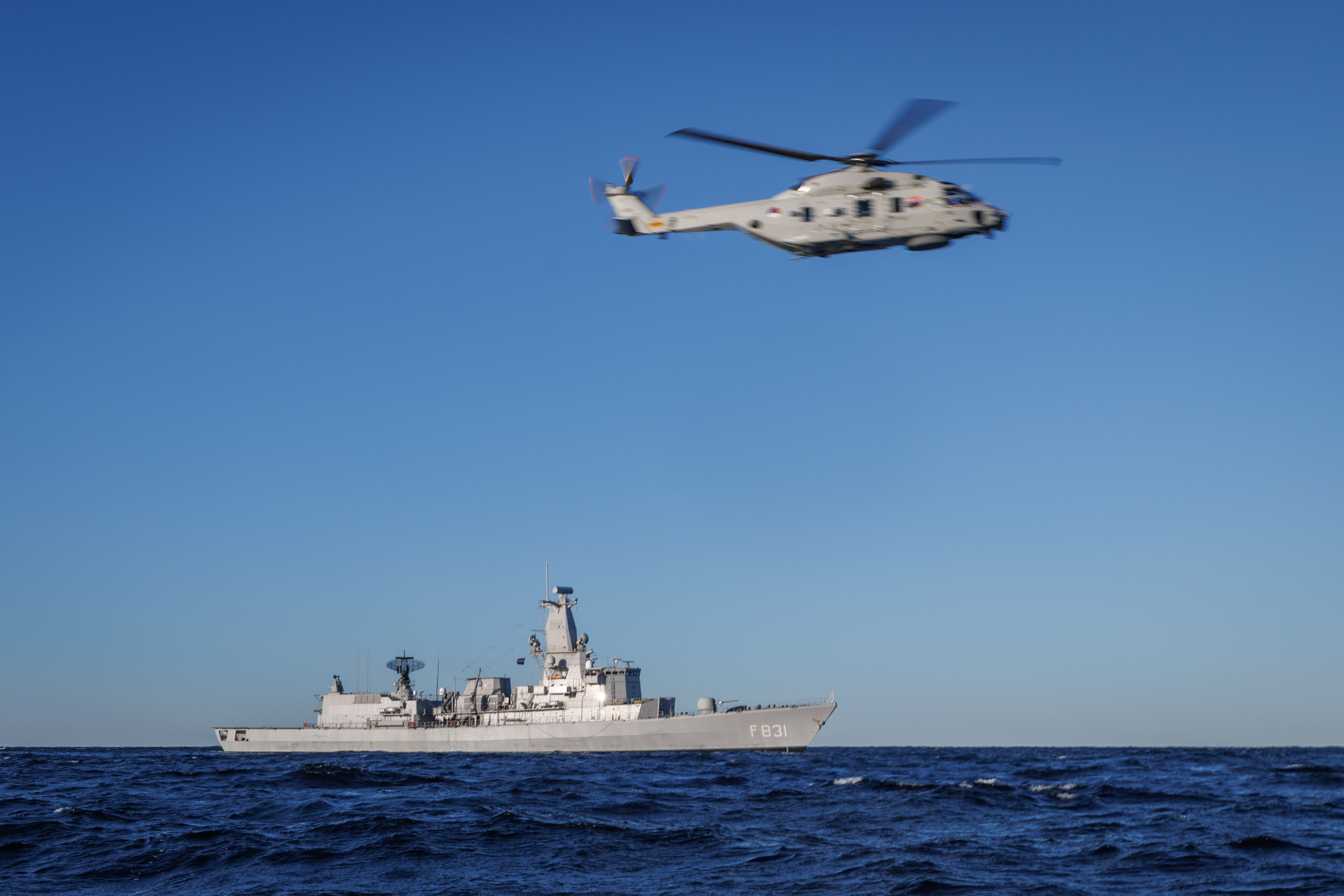 Sinds de Russische inval in Oekraïne behoren ASW-taken tot Hoofdtaak 1. Met oefeningen als Dynamic Monoose en Riptide (Noorwegen), Polaris en Squale (Frankrijk) en nu Playbook Merlin, houden de vlieg- en onderhoudsploegen van de boordhelikopter hun skills op peil. Wouter: “De kracht van de NH90 is dat het een verlengstuk van het schip is. Het kan op afstand zoeken naar onderzeeboten. Zo voorkomt de helikopterbemanning dat een onderzeeboot een dreiging vormt voor een schip of taakgroep. Idealiter zijn onze sensoren complementair aan die van het schip; dan bereiken we het beste operationele effect. Als het moet kunnen we binnen een kwartier wegvliegen, mits we met een ingewerkte bemanning werken en het toestel klaarstaat op het helikopterdek.”